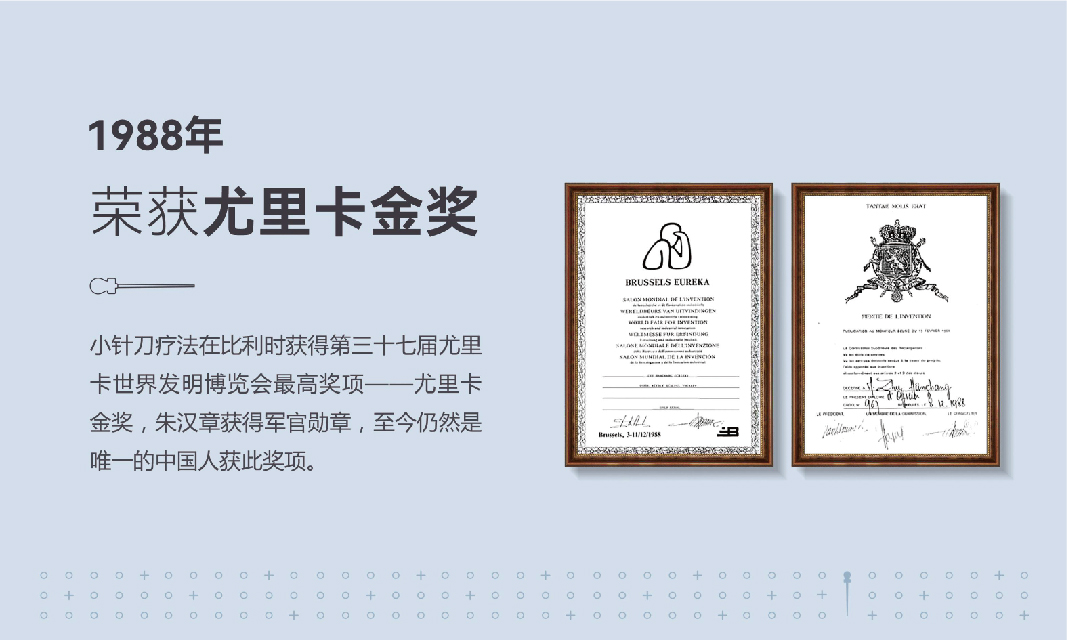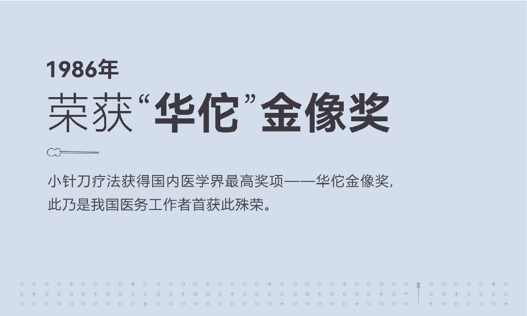 1976年,朱汉章教授在疗愈“因手部软组织粘连严重而完全失去功能的木匠工人之手”的过程中获得启发,创制了足以影响行业的新器物『针刀』。直径0.4-1毫米小针刀,形态葫芦状手柄,寓意“悬壶济世”。